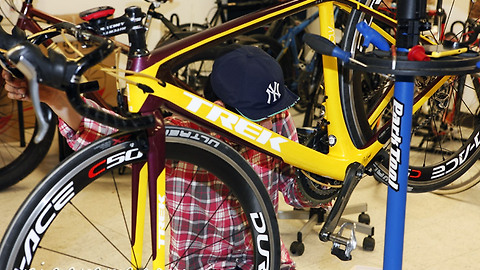 기존의 V-브레이크로는 산길 주행이 어려웠던 그는, 자신이 2010년부터 소장하고 있던 XTR 디스크 브레이크를 NM100XC 서스펜션과 매츠 프레임에 결합했다. IS 방식의 디스크 브레이크 장착 마운트가 있었기 때문에 가능했다.