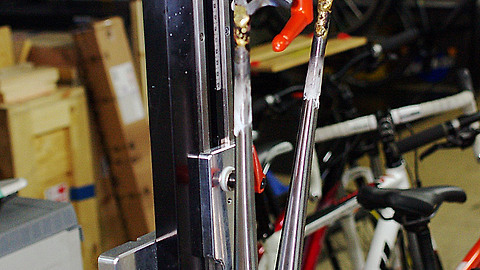 대부분의 고급 튜브들은 더블 혹은 트리플 버티드가 형성돼 무게를 줄이면서도 강성을 효과적으로 확보해 안지름이 조금씩 다릅니다. 그래서 튜브를 설계 수치에 맞게 잘라내기 이전에 어느 쪽 끝이 더 두꺼운지 확인해야 합니다. 이를 위해서는 마이크로미터(micrometer)를 이용해야 하지만, 튜브 대부분은 특별한 공구 없이도 버티드 상태 확인 가능합니다. 튜브 제조사에서 붉은색으로 힘을 많이 받는 부분에 칠을 해놓기 때문이죠. 그래서 불빛을 튜브 내부에 비추면 층층이 각이 진 것(버티드)을 맨눈으로 확인 가능합니다.